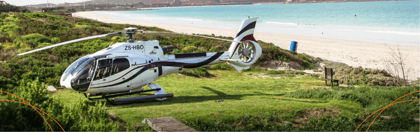 Полёт с вертолётной базы в V&A Waterfront в Салданью переносит гостей в другой мир, где вас встречают Кайл и Марти и угощают морепродуктами, не имеющими ничего общего со «стандартом». Трапеза проходит прямо на пляже — с шампанским и атмосферой, которую невозможно передать словами.